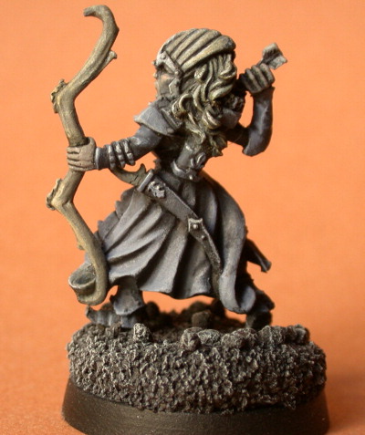 Dernier truc en passant, un petit test... J'ai essayé le coup de la figurine pré-ombrée. Sous-couche noire, puis pshiiiittt un peu de blanc sur le côté pour préparer l'éclairage.